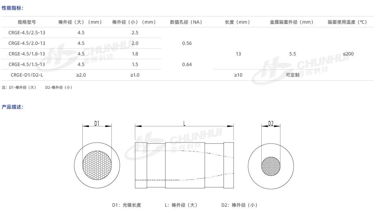 由單根或多根光纖絲,經高溫熔融拉制成型的硬質傳光元件;