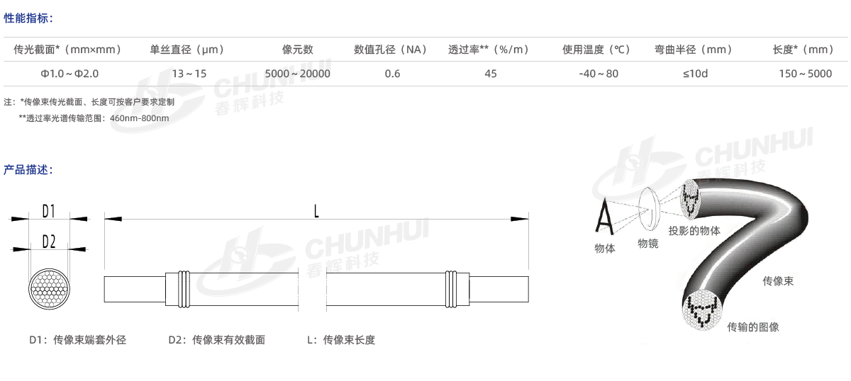 光譜傳輸范圍:460~800nm;
