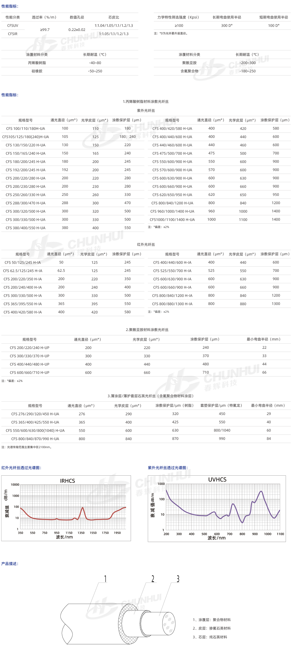 采用石英材料作為通光芯層和光學皮層,聚合物材料作為涂敷保護層;
